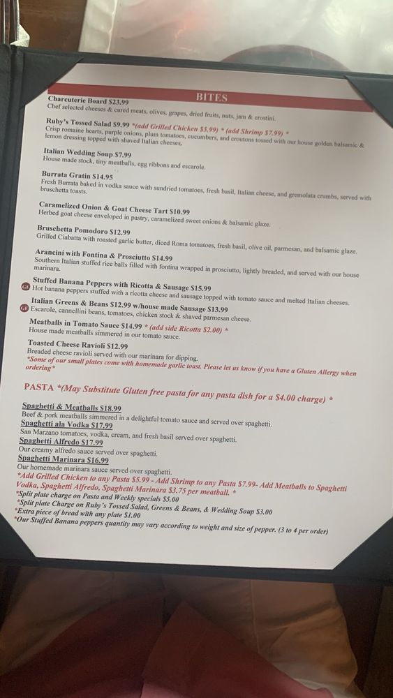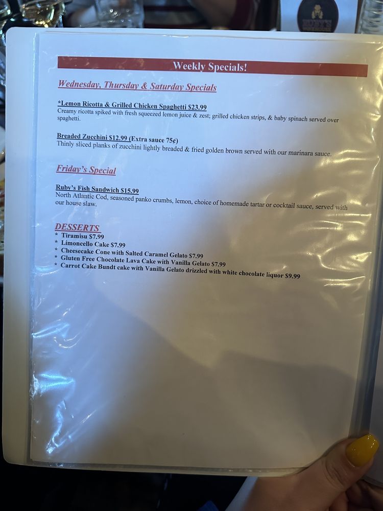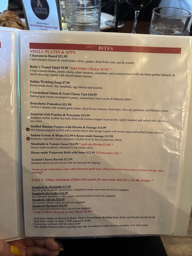 Ruby’s Winehouse Menu